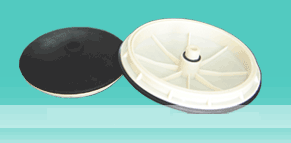 可變微孔曝氣器設(shè)計成略凸起拱形面,采用ABS工程塑料為主體。膜片具有抗附著表面的專用進口橡膠(EPDM),通過加工制成,膜片開孔選用德國進口數(shù)控刀開孔,保證了孔的質(zhì)量和精度。曝氣器在充氧曝氣時,主體盤面設(shè)計了四條送氣槽,使進入的空氣通過止回閥緩沖后直接送至曝氣頭中央保證膜片一次性低阻力輕松打開。膜片采用羅紋反鎖機械化裝配,確保膜片永不脫落。進氣時布氣膜上微孔自行鼓脹脹開,確?諝馔ㄟ^。在停止曝氣時,布氣膜上的可變微孔呈封閉狀態(tài),由于布氣膜的可變微孔自行擴張和收縮,避免經(jīng)往曝氣器微孔受堵現(xiàn)象。其次在曝氣器的底盤設(shè)有止回閥裝置,當管道系統(tǒng)停止供氣時阻止混合液進入布氣支管,這樣可避免支管內(nèi)進入混合液而被堵塞。進入的空氣不需過濾,間歇曝氣均不堵塞,并對可變微孔曝氣器類普遍出現(xiàn)的布氣氣膜易吹膜撕裂和打不開膜片或膜片受堵現(xiàn)象作很大的技術(shù)改進。