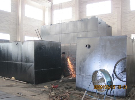 該設備采用接觸氧化法、由初沉池、接觸氧化池、二沉池、消毒池、污泥池、和風機六部分組成。該設備適用于埋入地下,不占地表面積,運行對周圍無影響。進水平均BOD5為200mg/l以下,出水降為50mg/l以下,去除率≥80%,COD去除率≥81%,懸浮物去除率≥80%。適用于食品、屠宰、釀造、印染等行業(yè)與生活污水相類似的有機工業(yè)污水和生活污水。